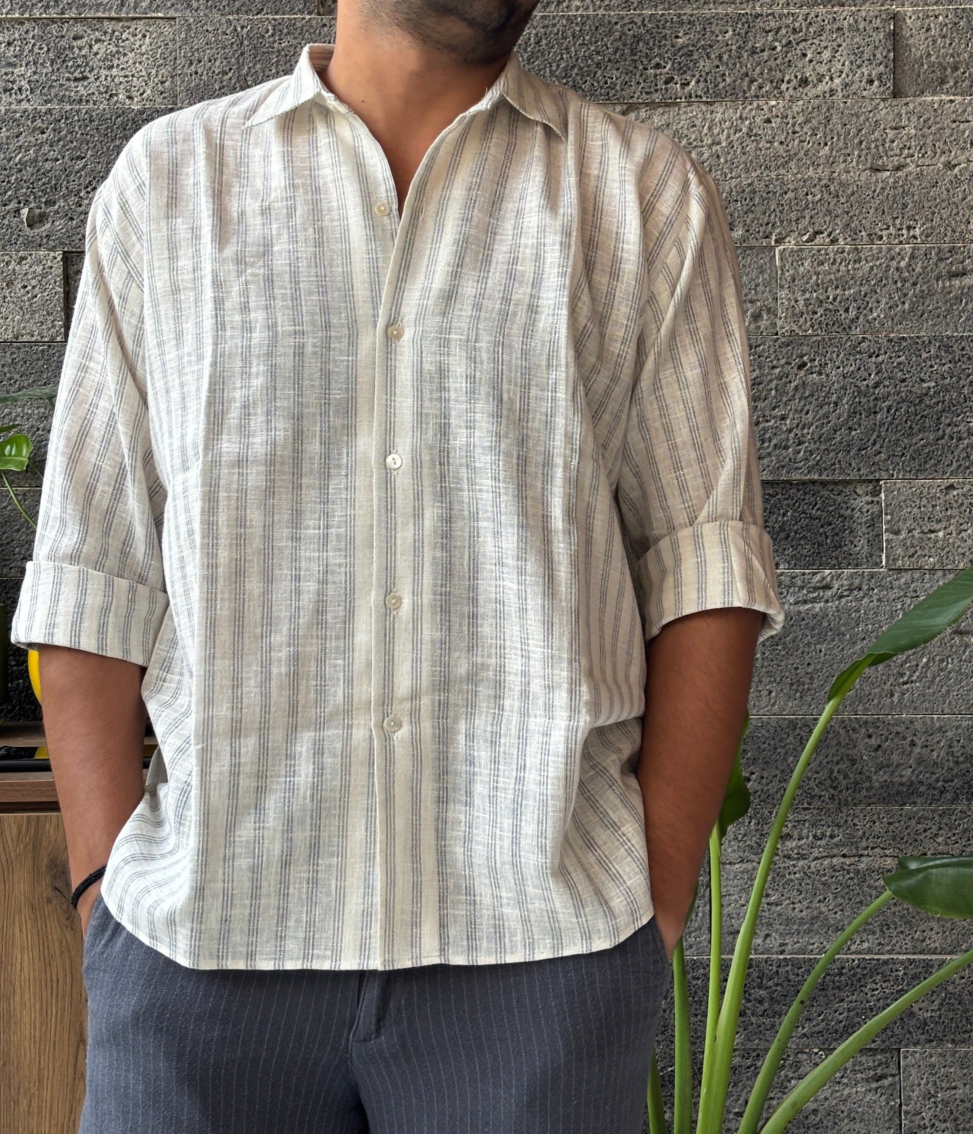 The Everyday Stripe Men's Shirt is a must-have for any wardrobe. Made with a blend of cotton and linen, this shirt offers both comfort and style. The shell buttons add a touch of sophistication to the classic stripe design. Perfect for any occasion, this shirt is a versatile addition to your collection.